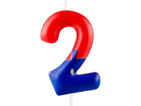 1 x red and blue Number 2 Numeral cake candles