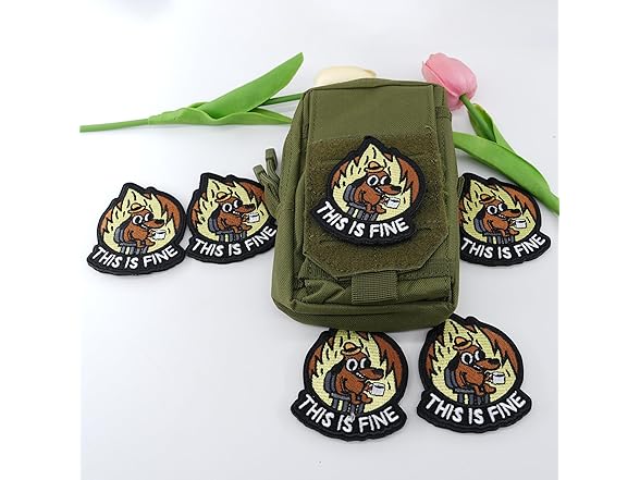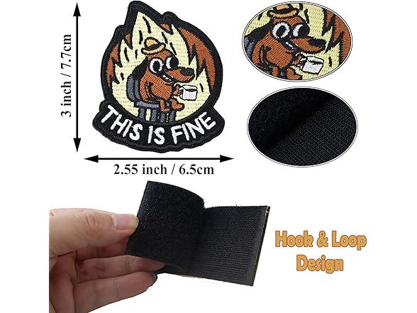 SQEYYGI 6 PCS Funny Patches, Tactical Military Morale Patch with Hook Fastener Backing, Cute Applique Accessories for Backpacks, Vests, Jackets, Jeans, Hats (This is Fine Dog)