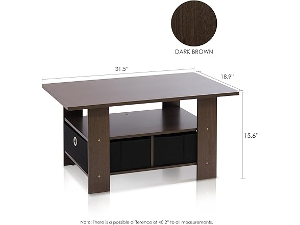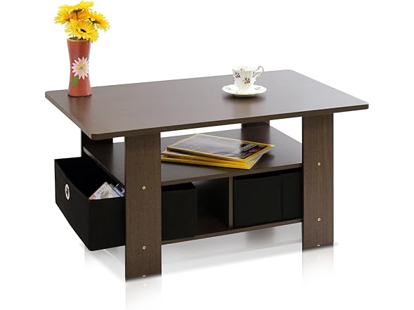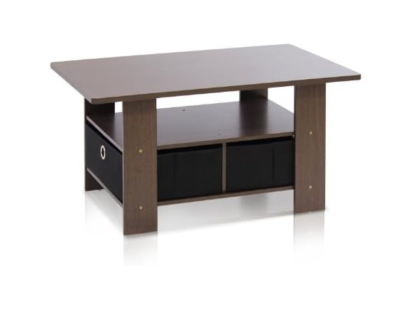 Furinno Coffee Table with Bins, Dark Brown/Black