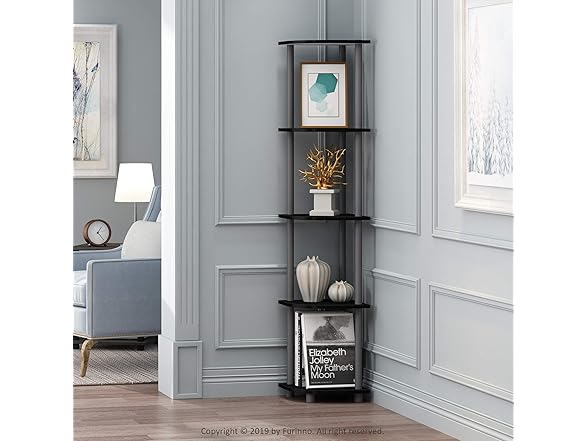 - 5 TIER MULTIPURPOSE SHELVES: This corner bookshelf is perfect for displaying photo frames, storing books, organizing toiletries, or showcasing collectibles in any room setting
