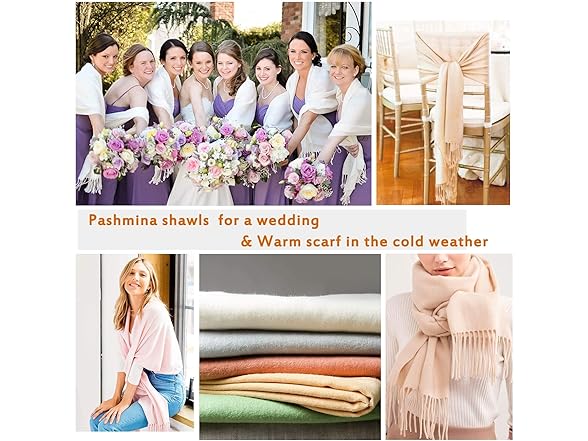 - Ideal as pashmina shawls and wraps for a wedding or evening dresses. Will give you extra warmth during cold weather. Such as church, office, airplane, restaurant