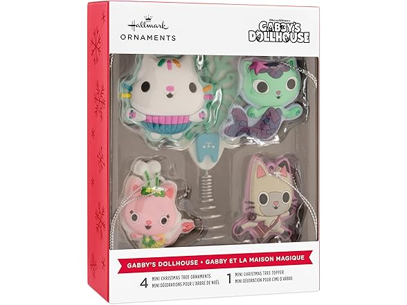 - Add the purr-fect touch to your holiday season with this Hallmark miniature Christmas tree topper and ornaments. The "Gabby's Dollhouse" designs are perfect for a tabletop Christmas tree.