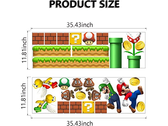 - EASY PEEL AND STICK:These gaming stickers easy to stick and peel,don't need to worry about leaving residues, the mario wall stickers are suitable for white walls.