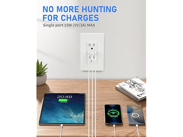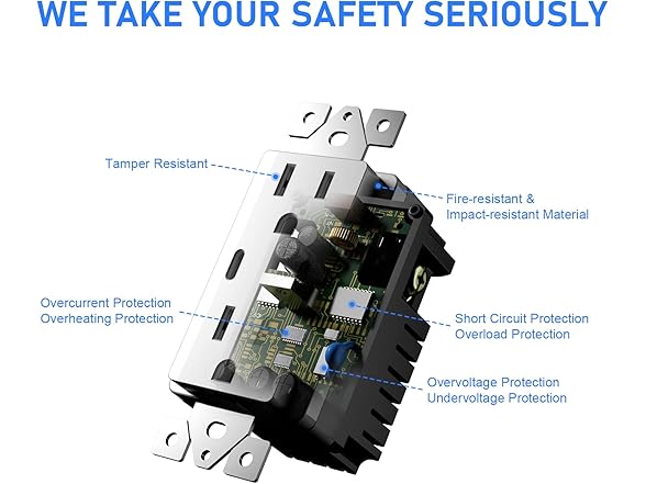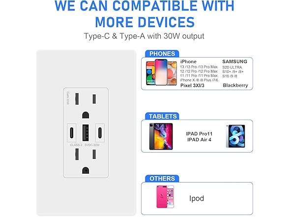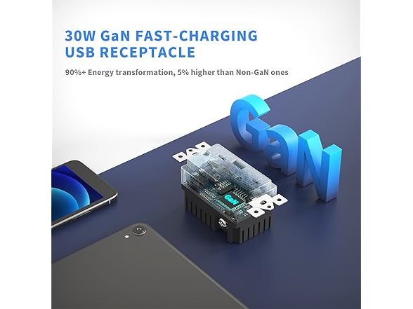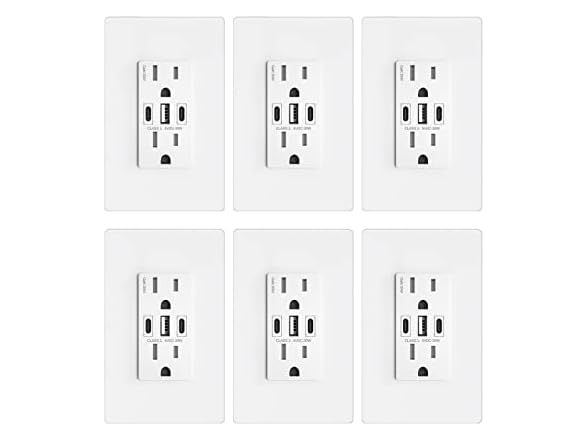 Amerisense GaN 30W 6Amp 3-Port USB Wall Outlet, 15 Amp Tamper-Resistant Receptacle with 2 USB Type C & 1 Type A Port, USB Charger for iPhone/iPad/Samsung/LG/HTC, UL Listed - 6 Pack