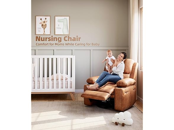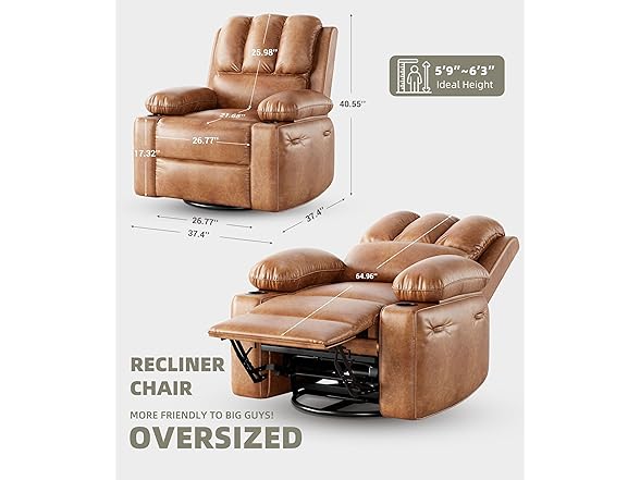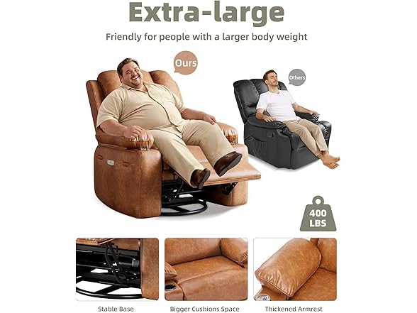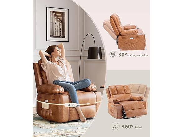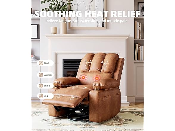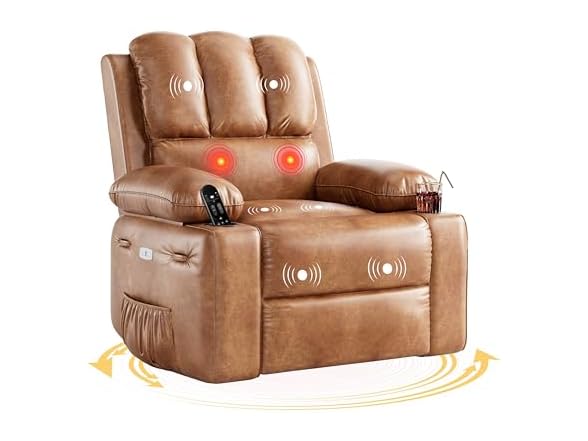 GarveeHome 360° Swivel Electric Massage Recliner Chair with Zero-Gravity & 3D-Heat Therapy - Overstuffed Faux Leather Power Rocking Sofa, Remote Control/USB Charger/Storage Pocket for Home & Office