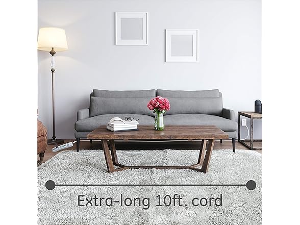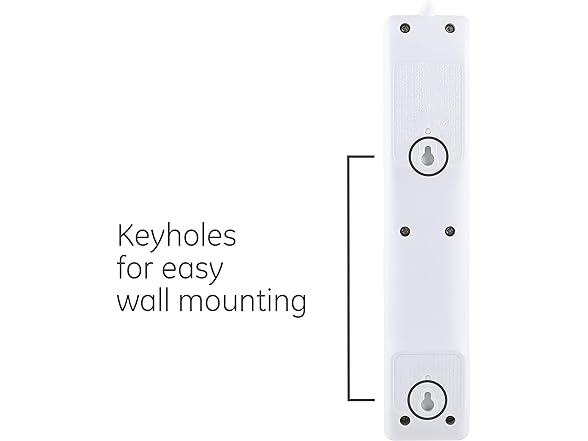 GE 6-Outlet Surge Protector, 10 Ft Extension Cord, Power Strip, 800 Joules, Flat Plug, Twist-to-Close Safety Covers, UL Listed, White, 14092