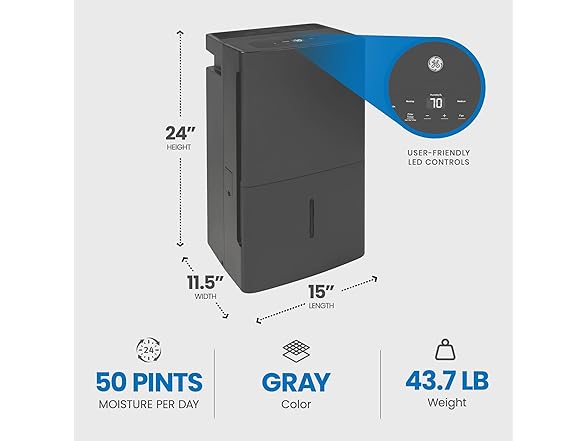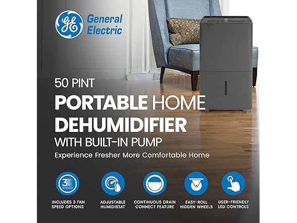 GE ADEL50LZ 50 Pint Enery Star Portable Dehumidifier Bla (Open Box)