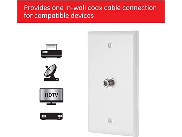 GE Coaxial Cable Wall Plate, 72 Pack, 1 Coax F Type Connector, Single Gang, White, Installation Hardware Included, for Contractors and Installers, 57395
