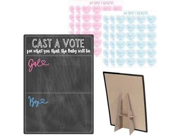 Gender Reveal Decorations Set with 144 Girl or Boy Voting Stickers and Cast Your Vote Sign Board with Stand for Baby Shower Games(Chalkboard Design, 12 x 17 in)