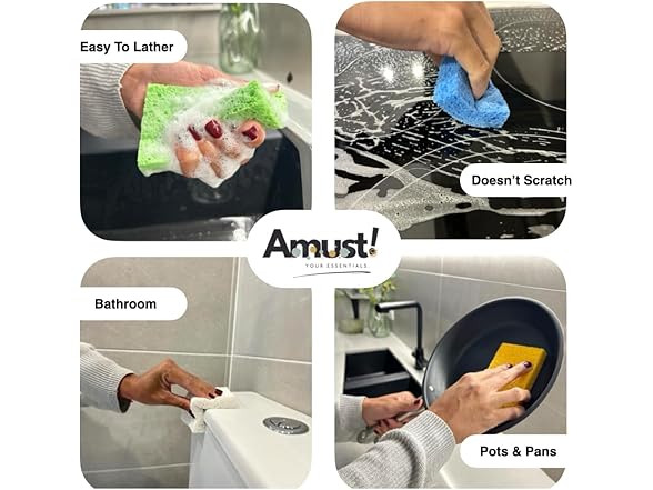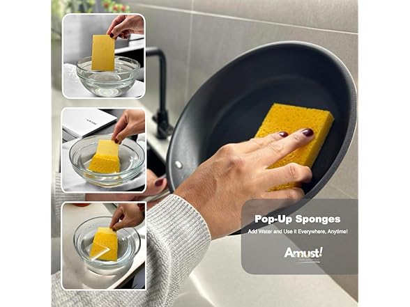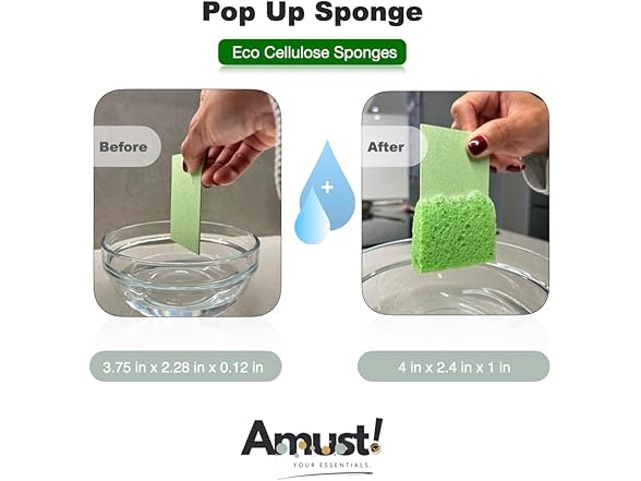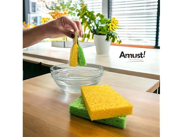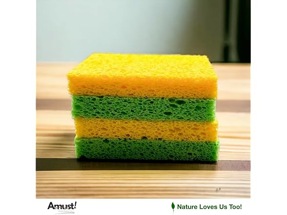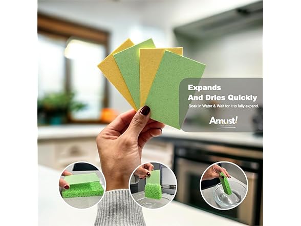 Generic Amust 12 Pack Cellulose Sponges for Kitchen, pop up Sponge, Compressed sponges for Cleaning, Sponges, Bathroom, Bulk Sponges, Natural Sponge, Kitchen (Green & Yellow), OS-KCS0023