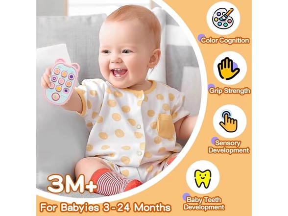 Generic Baby Teether for 3 Months and Up, Soft Buttons, BPA Free, Grey