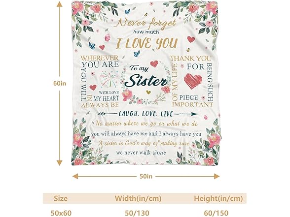 Sister Blanket for Birthday, Travel, Picnic, Thanksgiving Day, Mother's Day - 50x60 Inches