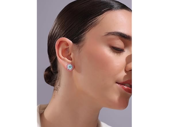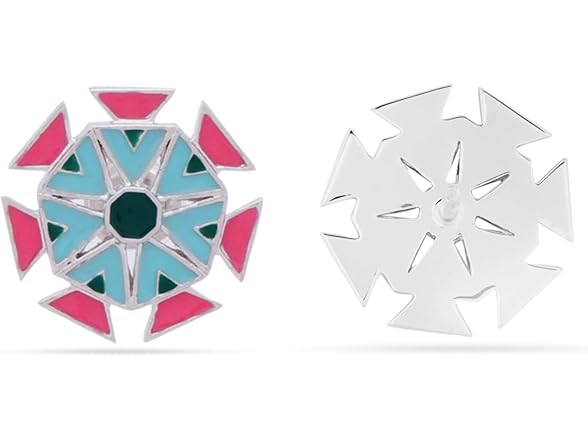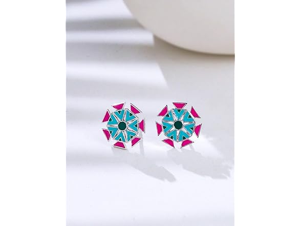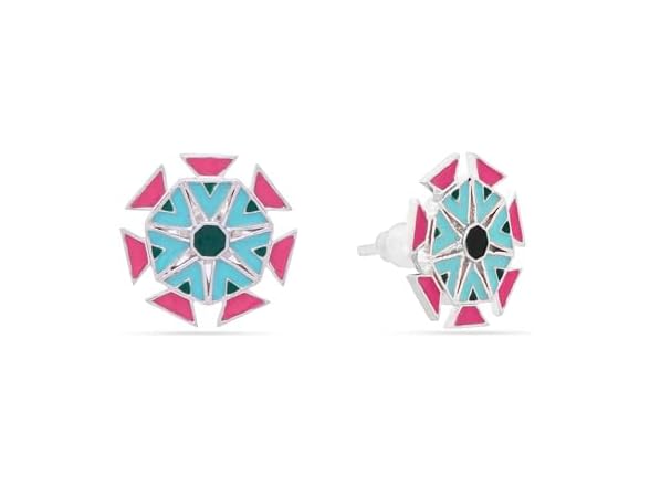 Navicia Color Blast Geometric Lotus Brass Stud Earrings, Floral Enamel Designs, Featuring Nubia