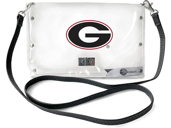 Littlearth NCAA Georgia Bulldogs Clear Envelope Purse with Black Fashion Strap, Team Color, 10" x 6.5" x 0.5"