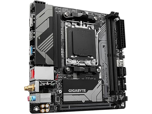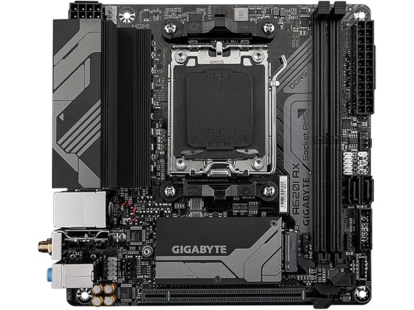 Gigabyte A620I AX Motherboard - Supports AMD Ryzen 8000 CPUs, 5+2+1 Phases Digital VRM, up to 6400MHz DDR5 (OC), 1xPCIe 4.0 M.2, Wi-Fi 6E, 2.5GbE LAN, USB 3.2 Gen 2