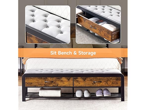 - 【Space-Saving Storage】Maximize your bedroom space with two spacious drawers and a wire mesh shelf located under the stool. Store extra sheets, accessories, clothing, books, and more.