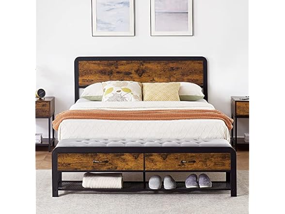 - 【Rustic Vintage Wood Headboard】The headboard of this bed frame is made of wood with a rustic vintage finish, which can add warmth and character to your bedroom décor. The wood material also ensures durability and long-lasting quality.Support Up to 800 lbs.