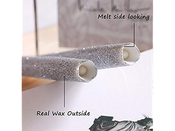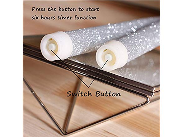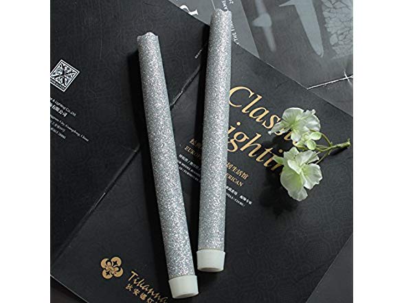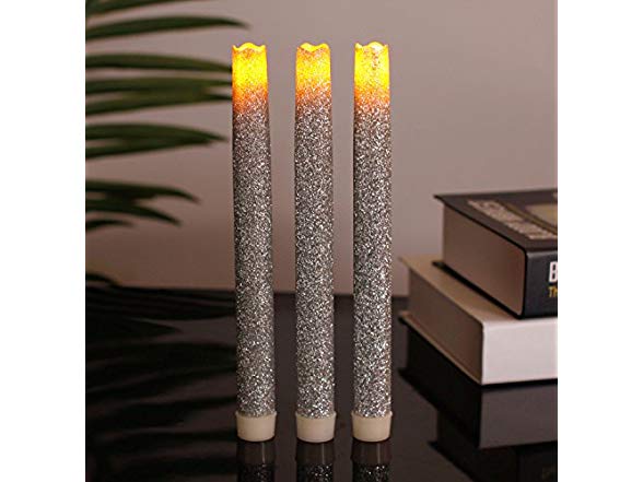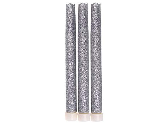 GiveU Flameless Taper Candle w/ Timer, Battery Operated, 9", Silver Glitter (Set of 3)
