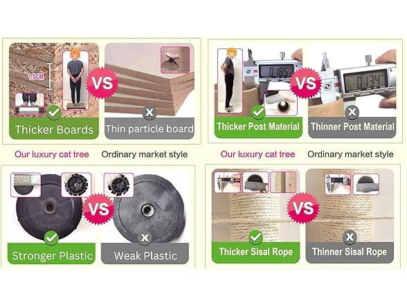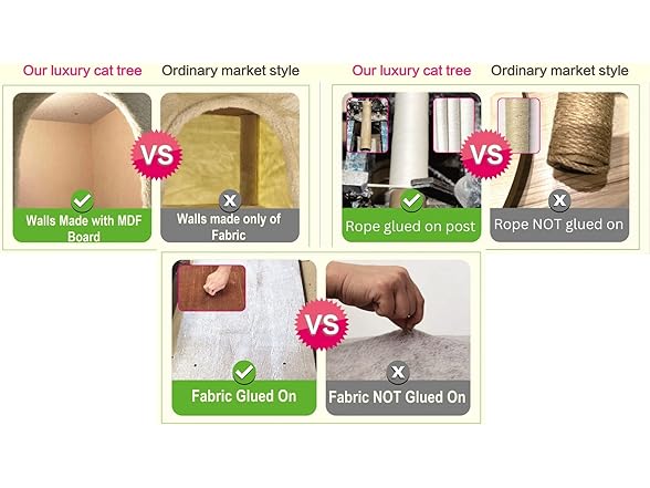 - SAFETY FIRST: Crafted with heavy weight, durable and environmentally friendly 0.6-inch MDF boards for overall balance. Thick scratcher poles with extra strong plastics for stability and longevity are used and the minimal use of well-hidden staples will keep your loved one’s paws well protected.