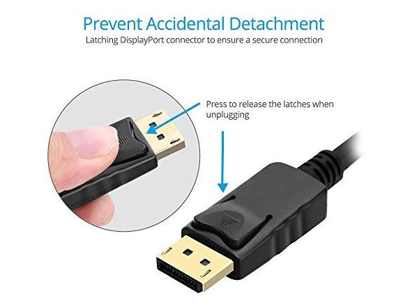 - RELIABLE CONNECTION - Features latching DisplayPort connector to prevent accidental detachment, Quad-shielded cable with PVC jacket for maximum video performance & prevention of signal loss as well as HDCP (High-bandwidth Digital Content Protection) support