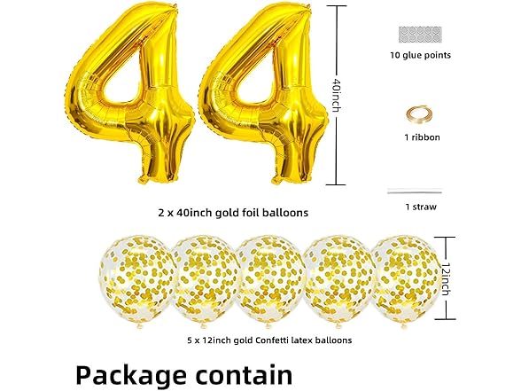Gold 44 Foil Balloons 40" Jumbo Foil Balloons Confetti Balloons for 44th Birthday Wedding Anniversary Party Decorations