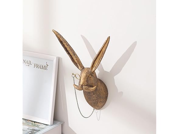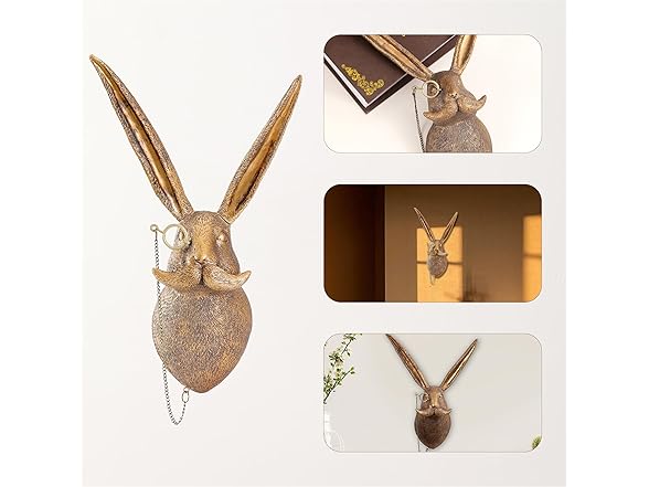 Xuanpax Gold Animal Head Vintage Wall Art Animal Wall Decor Sculpture Home Decor Statue for Living Room, Bedroom & Office(Rabbit)
