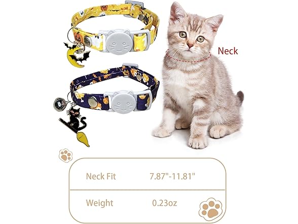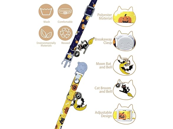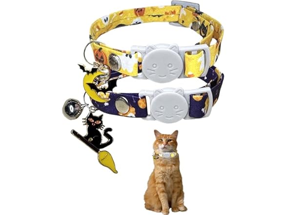 GoldTiger 2 Pack Halloween Cat Collars Breakaway with Pendant and Bell,Adjustable Cat Collars with Safety Buckle,Holiday Cat Collar for Girls and Boys,Adjustable from 7.87"-11.81"