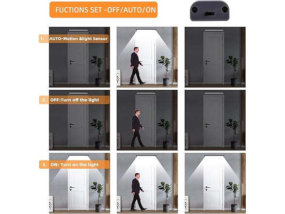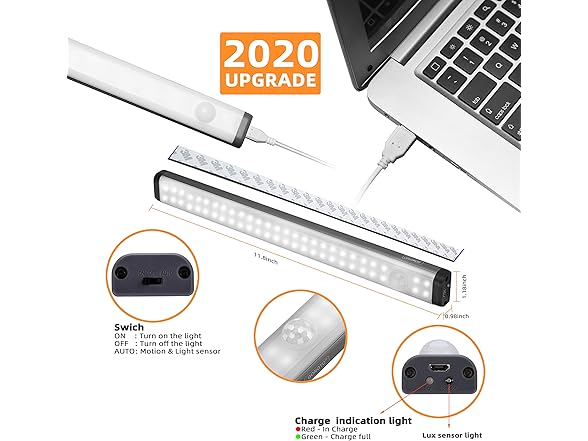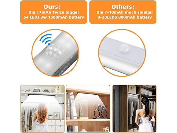 Motion Sensor led Closet Light Rechargeable - GONOTO (2020 New) 1500mAh Battery Powered Wireles Under Cabinet Light for Wardobe,Kitchen,led Pantry Light 3W NaturalWhite 3 Mode (ON/Off/Auto) 2pack
