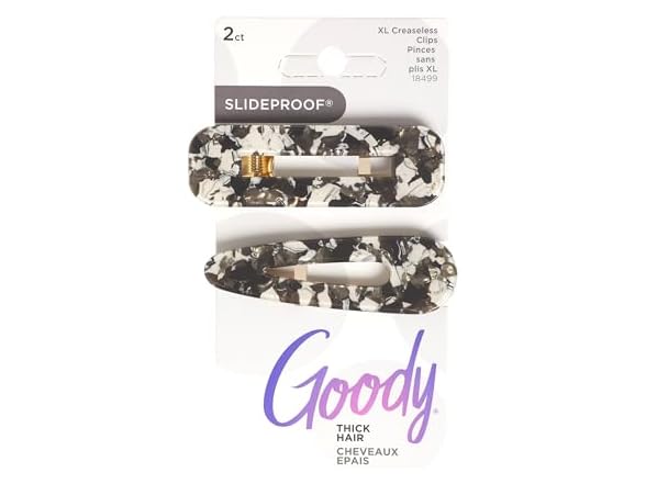 Goody SlideProof Resin Hinge Hair Clip Set, 2 Ct, XL-sized Printed Black Clips for Styling, Quick & Easy Creaseless Styling, Accessories for Women & Men, For Medium to Thick Hair