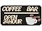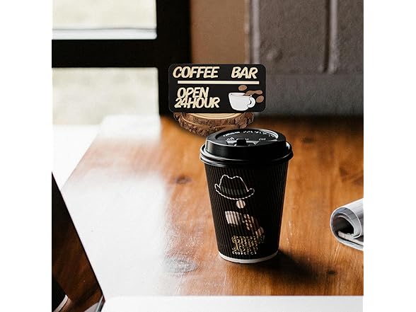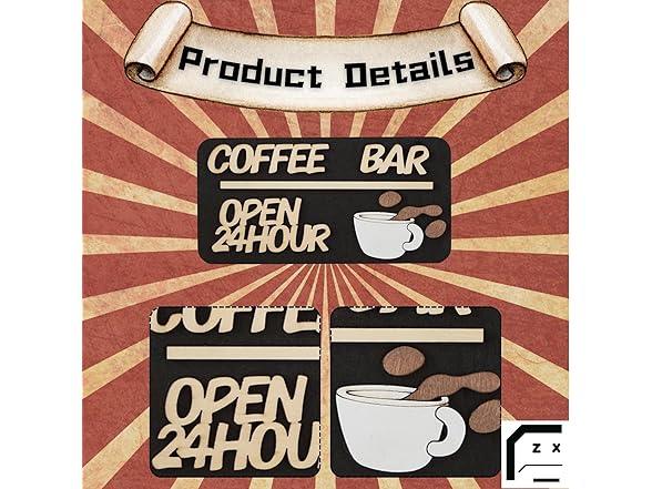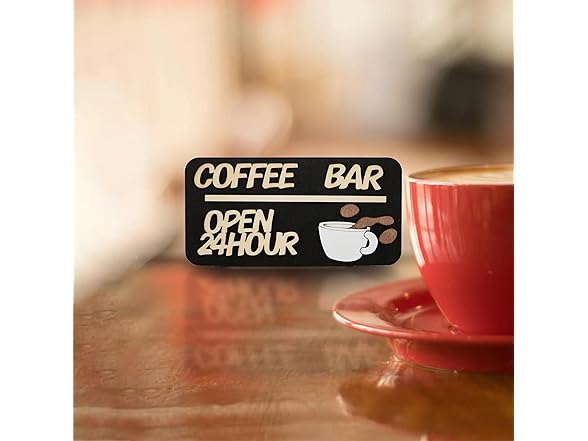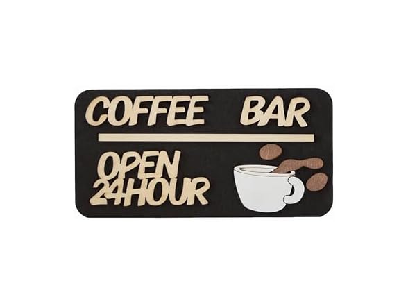 - Unique Design: This wooden coffee bar decoration features a minimalist yet fashionable design. The black background is paired with light-colored wooden letters, making the phrase "COFFEE BAR OPEN 24 HOUR" stand out, clearly indicating the coffee bar's operating hours. The adorable coffee cup icon and the detail of coffee splashing add a touch of playfulness and vitality to the entire decoration.