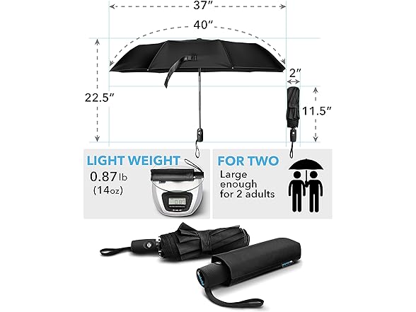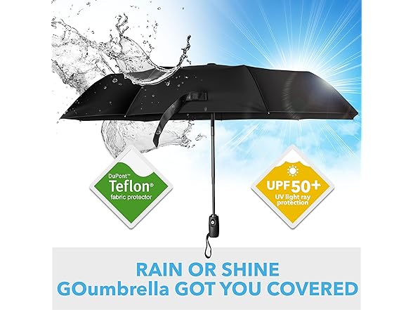 GOumbrella Travel Umbrella Windproof Rain (Teflon Coating) Sun (UPF50) Protection Compact - Auto Open/Close