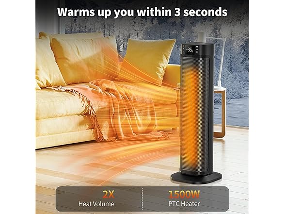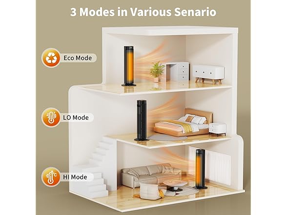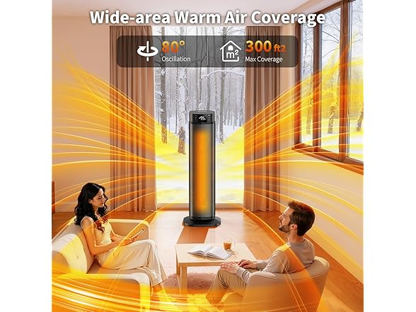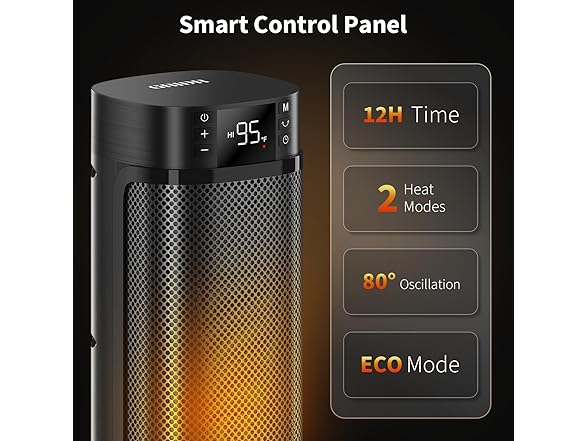 - Comfort at Every Angle: Room heater for indoor offers an 80° wide-angle oscillation, increasing heating coverage by 70% and easily warming areas of 100–300 sq ft. Choose from three heating modes (HI/LO/ECO) based on your needs.