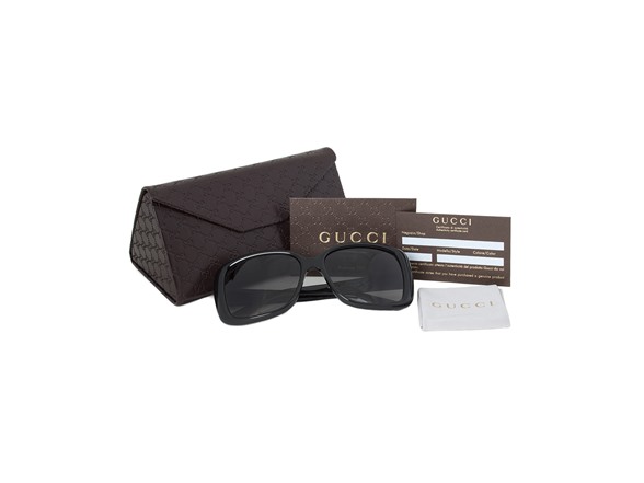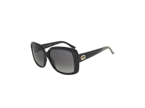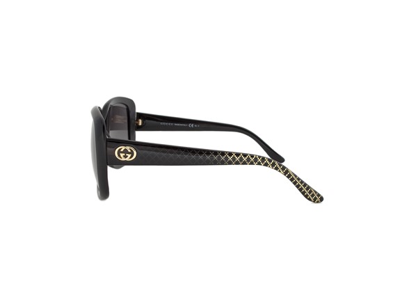 Featuring flawless lines, appealing curves and inspirational design, these Gucci GG 3547/S W6Z/WJ Sunglasses are made to be noticed. The shiny black butterfly shaped single bridge full rim oversize frame pays appropriate homage to the smoky gray gradient lenses. This seductively desirable offering is beautified with the gold toned interlocking Gs branding on the temples and the gold gradient quilted diamond pattern running dow the length of the paddle arms. Measuring 56-16-135mm, this item ships with its own case, lens cleaning cloth and manufacturer's authentication tags.