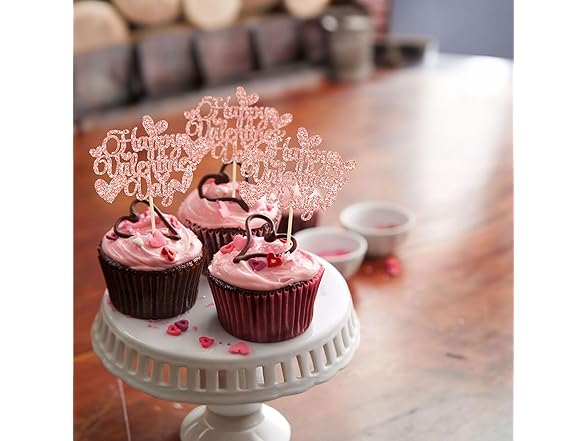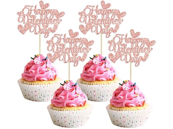 Gyufise 36Pcs Happy Valentine's Day Cupcake Toppers Glitter Sweet Love Cupcake Picks Valentine's Day Cake Decorations for Wedding Engagement Bridal Shower Birthday Party Supplies Rose Gold