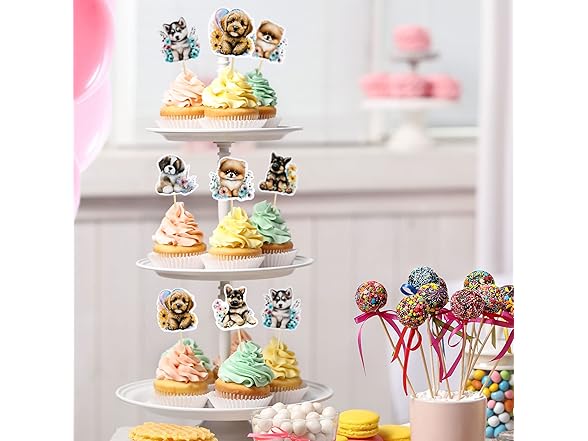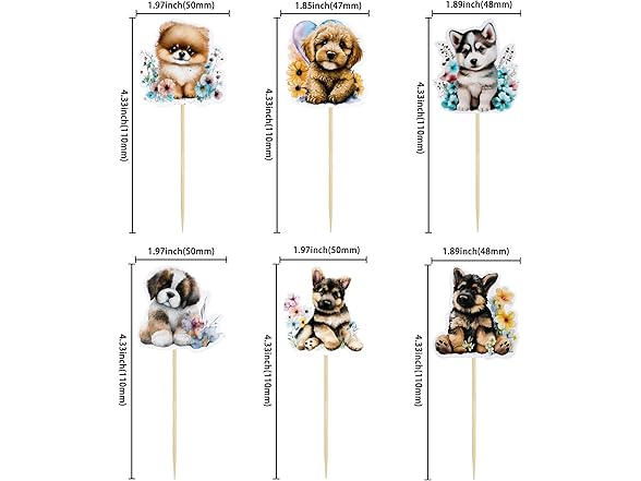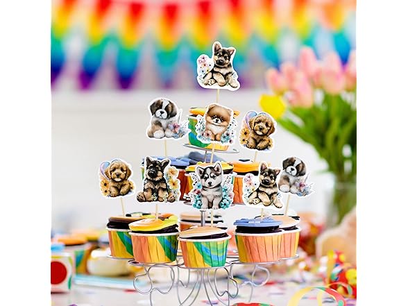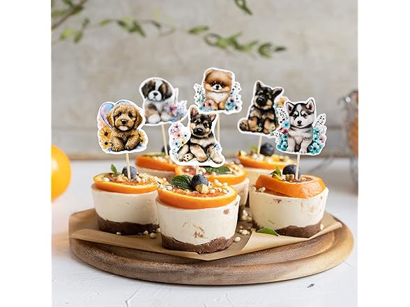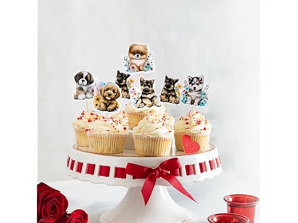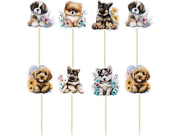 Gyufise 36Pcs Pet Cupcake Toppers - Cartoon Dog & Puppy Cake Topper Decorations for Pet Theme Baby Shower & Kids Birthday Party