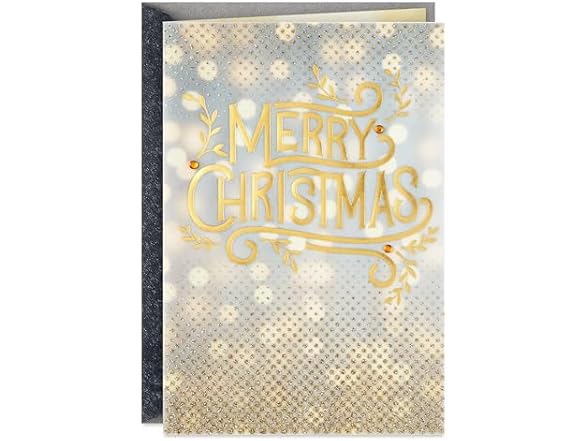 Hallmark Glittery Gold Christmas Card (Merry Christmas, Thinking of You) for Grandparents, Aunts, Uncles, Friends