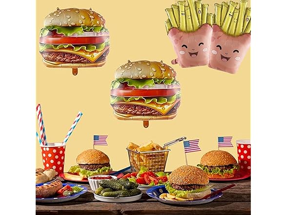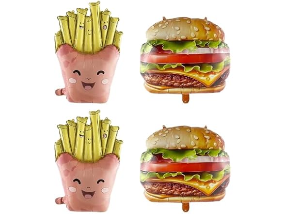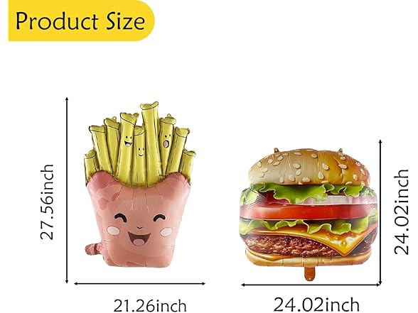 - Package Included: 2pcs French Fries Shape Foil Balloon,2pcs Hamburg Foil Balloons,Totally 4PCS.Perfect for Fast Food Theme Party Decorations