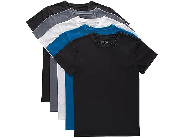 Hanes Boys' Big Originals Performance Mesh Tween T-Shirt Pack, Stretch Undershirts, 5-Pack, Black/Blue/Grey/White