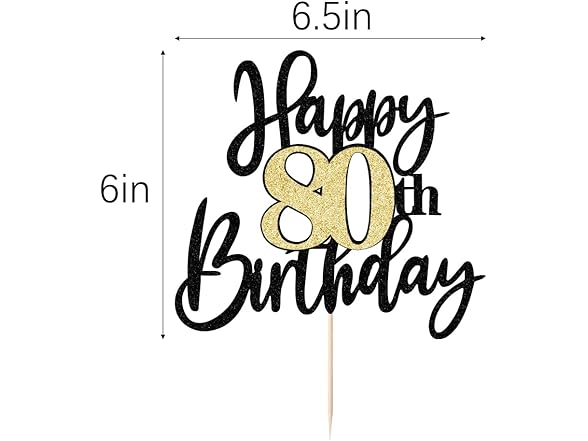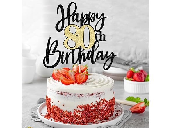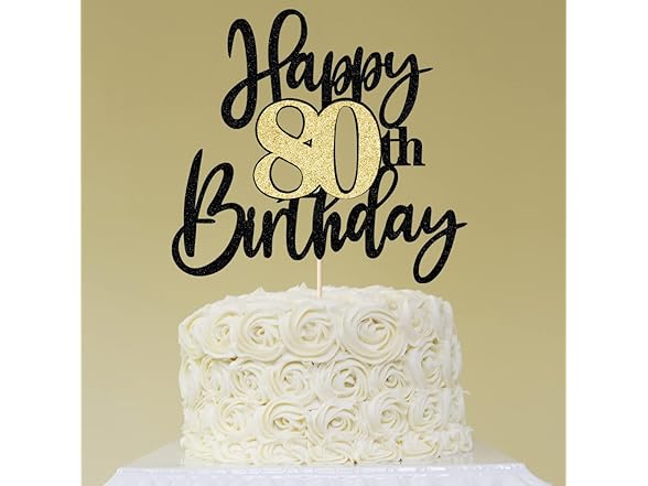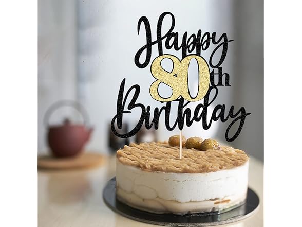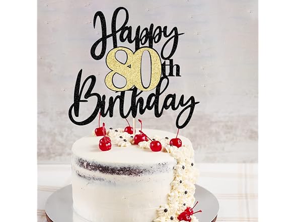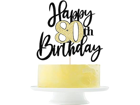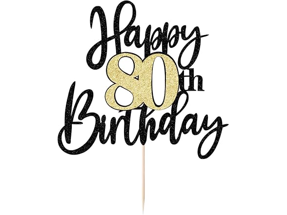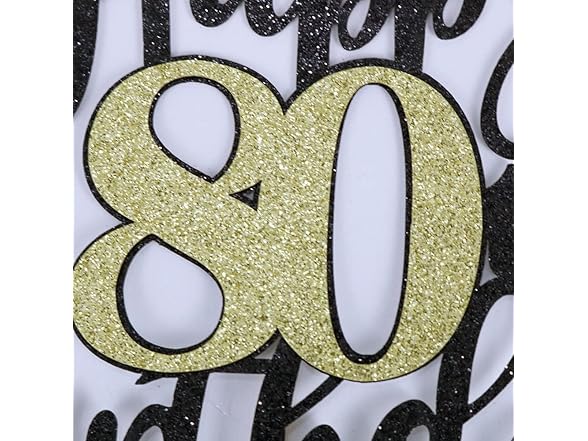 Black Gold Glitter Happy 80th Birthday Cake Topper,Happy 80 Birthday Cake Decoration for 80 & Fabulous Birthday,Hello 80 Party Anniversary Party Cake Decorations Supplies