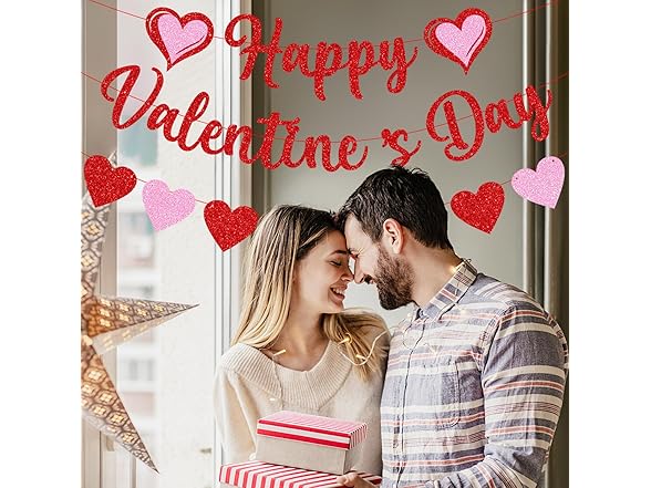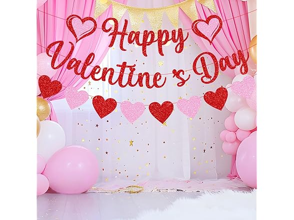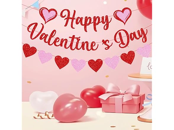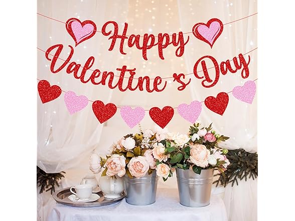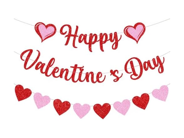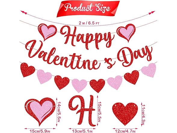 - VALENTINES DAY DECORATIONS: A shiny Happy Valentines Day Banner, a red and pink heart shaped garland banner, a total of 8 hearts, perfect for your sparkling valentine's day decoration, this lady's celebration party