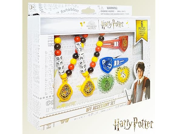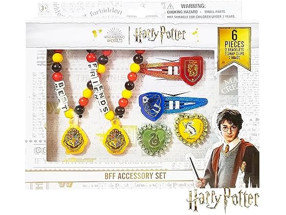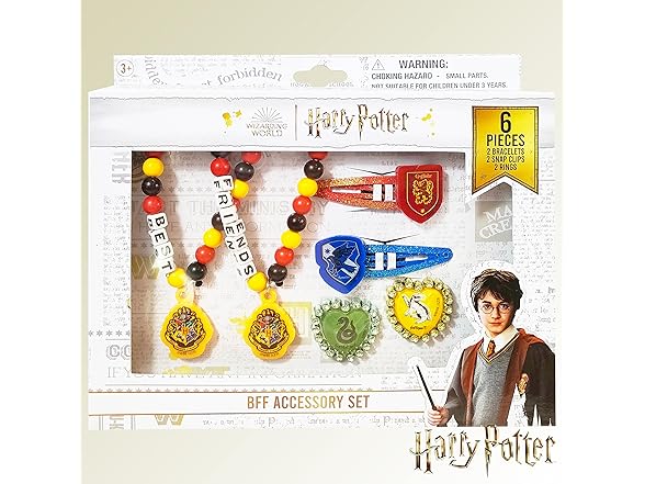 LUV HER Harry Potter Girls BFF 6 Piece Toy Jewelry Box Set with 2 Rings, 2 Bead Bracelets and Snap Hair Clips Ages 3+