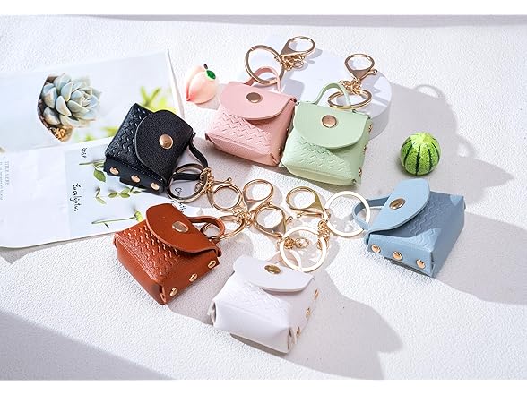 HEAKEY Cute Handbag Keychain For Women PU Leather Elegant Design Car Pendant Keyring Ornament Bag Purse Charm Accessories (pink)