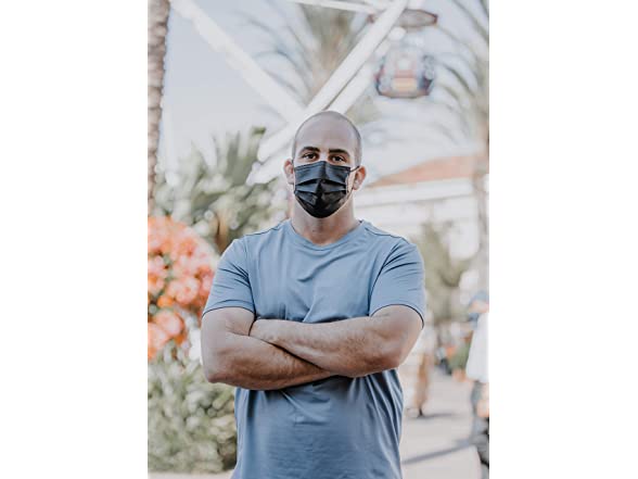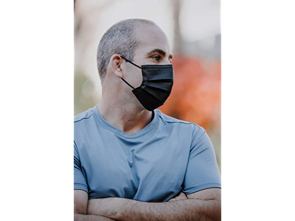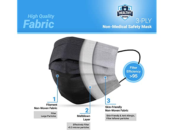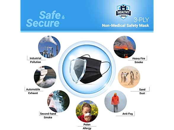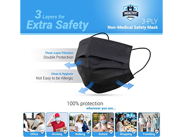 Healthy Shield 50pcs Disposable 3-Ply Safety Face Mask, Comfortable Ear Loop and Breathable, Non-Woven, Mouth Covers, Nose Clip, perfect for Adult, Men, Women, Home, Office, Indoor, Outdoor. (BLACK)