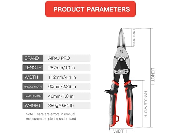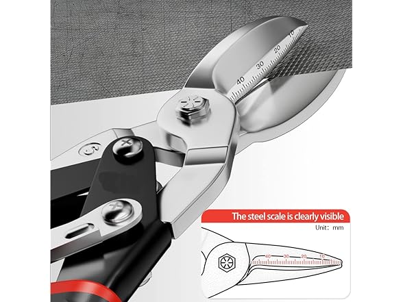 - 【Precision Cutting】The blade of the tin snips for cutting metal sheet is clearly marked with a scale, which allows for precise cutting according to the work requirements. Tin snips straight cut can not only cut in a straight line, but also to the left and right for a wide curve of the cut, minimizing the tedious operation steps, is your work and life's powerful helper!