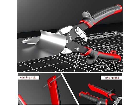- 【Humanized Design】Aviation tin shears choose TPR two-color covered rubber handle, comfortable grip, ergonomic design, suitable for long working hours; tail with hanging holes of tin cutter, easy to take at any time.