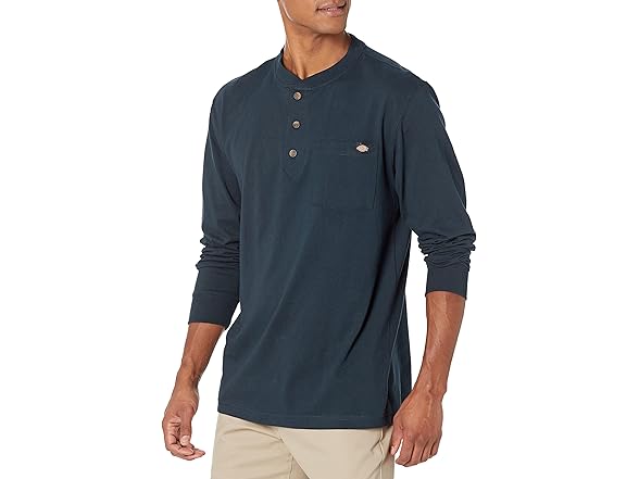 Dickies Men's Long Sleeve Heavyweight Henley, Dark Navy, Large