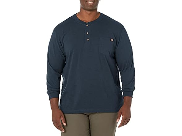 Dickies Men's Long Sleeve Heavyweight Henley, Dark Navy, Larget/Tall