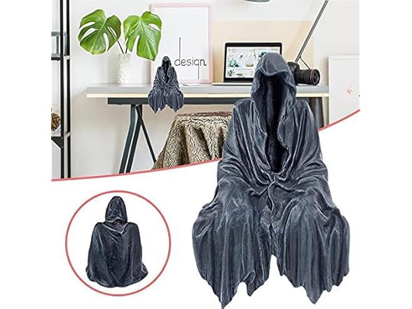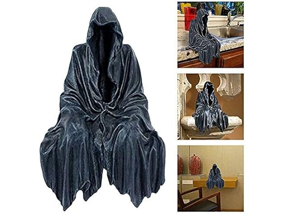 Hefaxi The Creeper Sitting Garden Statue-Gothic Grim Reaper Statue, Black Robe Walker Gothic Resin Desktop Ornament Figurine, Home Yard Garden Lawn Decoration