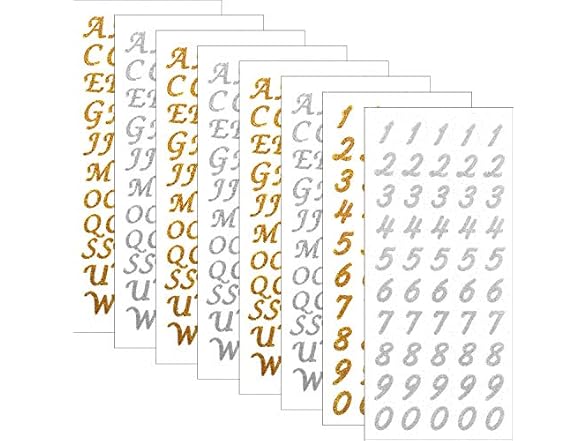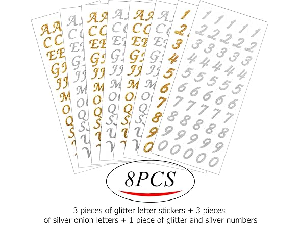 8 Sheets Glitter Alphabet Letter Stickers Self Adhesive Number Stickers for DIY Crafts Art Making