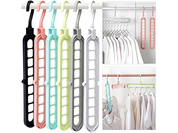 - Space Saving Closet Hanger: Closet organizers and storage can save more wardrobe space. When used vertically,magic closet storage hangers with premium smart hanger hooks can save more than 80% of the space and keep the clothes neatly separated and wrinkle-free. The storage organizer with 9 square holes design make each piece of clothing ventilated at equal intervals without crowding. Closet space saving hangers can hang at least 9 pieces of clothes,and easily bid farewell to messy wardrobes